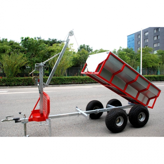 XTM-OT02 come un atv legname trailer, è molto facile ed efficace per caricare e trasportare i boschi con una gru su di esso. stabilizzatori laterali mantengono stabile durante il caricamento o lo scaricamento con il braccio elevatore il trailer.