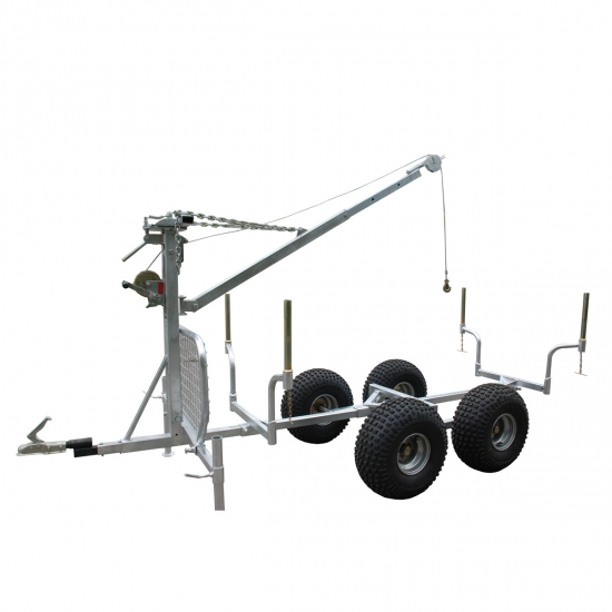 XTM-OT02 come un atv legname trailer, è molto facile ed efficace per caricare e trasportare i boschi con una gru su di esso. stabilizzatori laterali mantengono stabile durante il caricamento o lo scaricamento con il braccio elevatore il trailer.